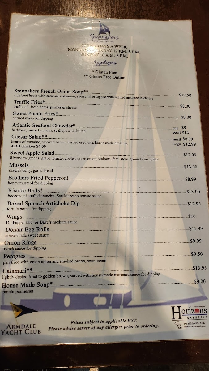 Spinnakers Restaurant offers a menu that balances casual comfort with thoughtful craftsmanship, perfect for relaxed meals by the water. Whether you’re dining inside with cozy ambiance or soaking up the views from the patio, the food complements the setting with familiar yet satisfying dishes.